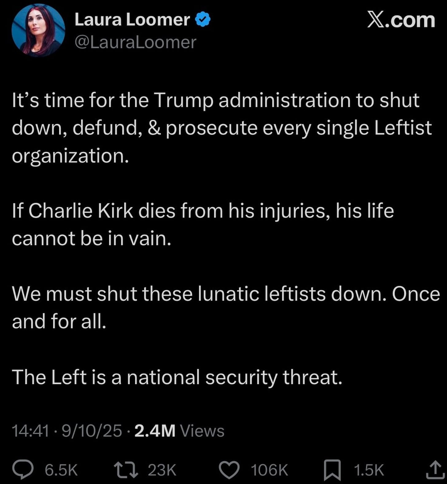 What’s even more tragic, however, is the immediate blame laid on “the left” by the likes of Laura Loomer and Elon Musk: